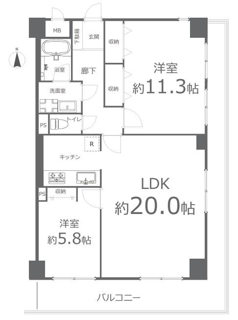 | 間取り | 2LDK | 間取り内訳 | LDK16.5畳 洋5.8畳 洋11.3畳 |