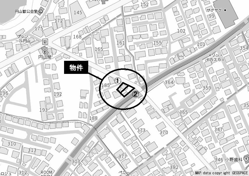 ※地図上の「対象地」は「〒703-8271 岡山県岡山市中区円山」の場所を指しています。実際の場所ではない場合がございます。詳しくはお問い合わせください。