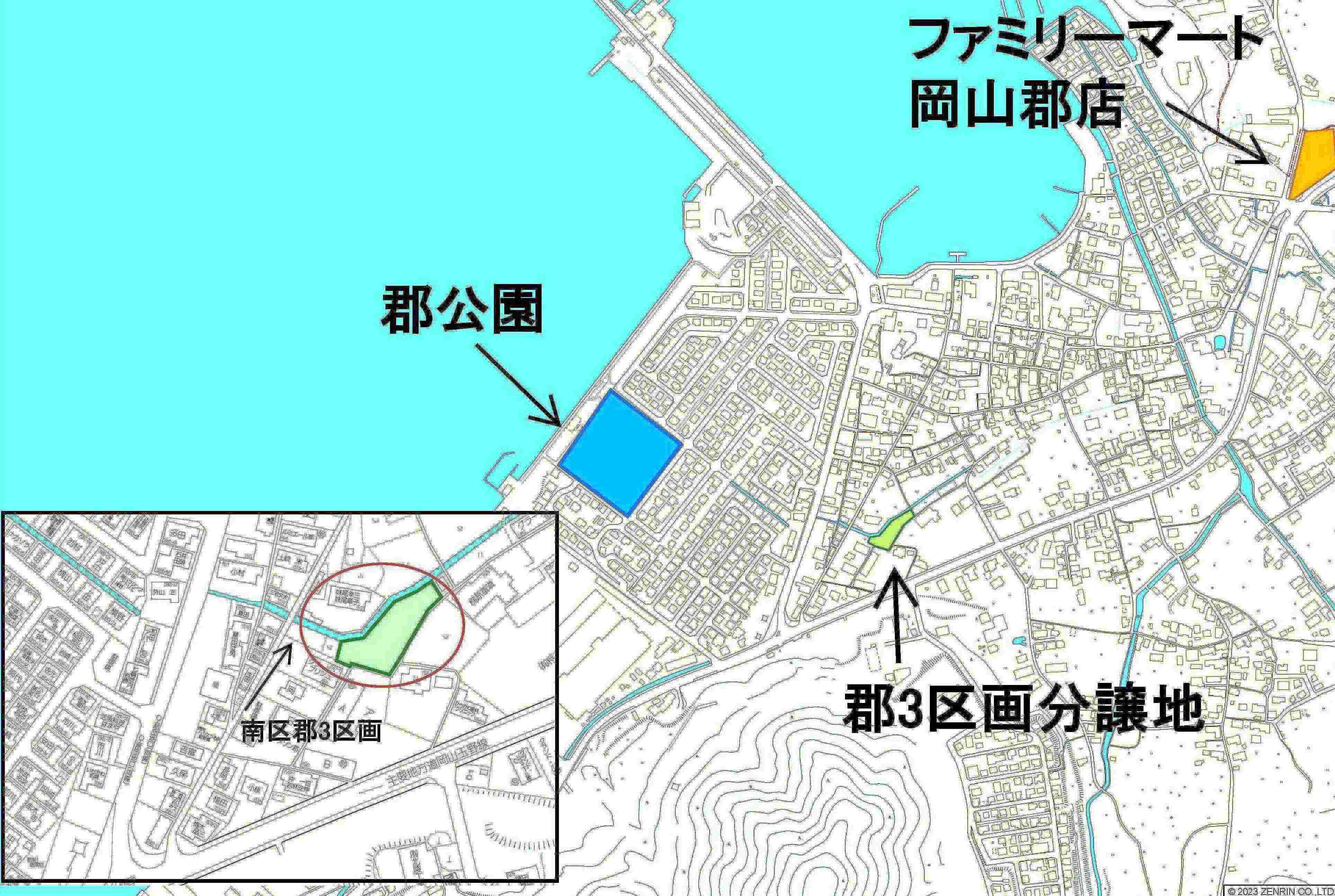 ※地図上の「対象地」は「〒702-8011 岡山県岡山市南区郡」の場所を指しています。実際の場所ではない場合がございます。詳しくはお問い合わせください。