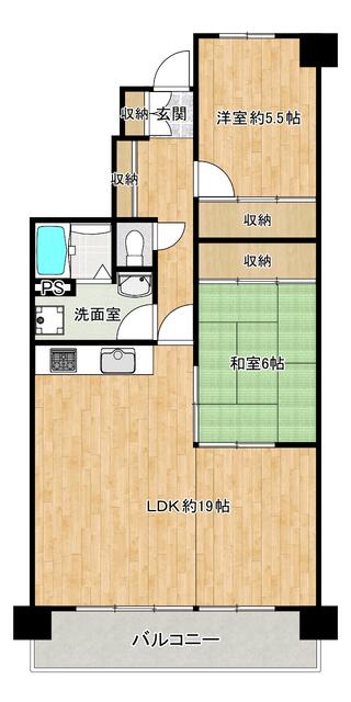 | 間取り | 2LDK | 間取り内訳 | 和6畳×1室 洋5.5畳×1室 LDK19畳×1室 |