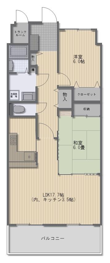 | 間取り | 2LDK | 間取り内訳 | LDK17.7畳 洋6畳 和6畳 |