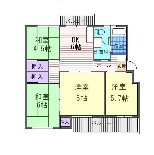 | 間取り | 4DK | 間取り内訳 | 和4.5畳 和6畳 洋8畳 洋5.7畳 DK6畳 |