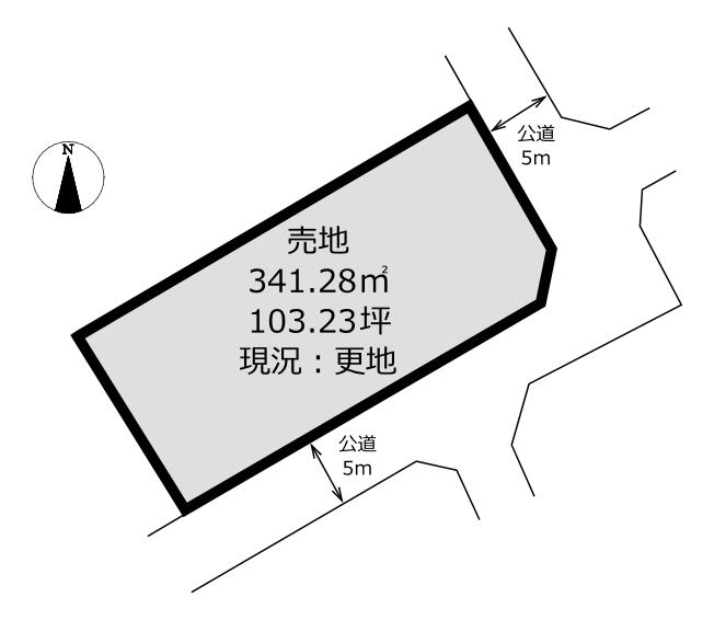 | 接道状況 | 北東5m 公道 位置指定無 南西5m 公道 位置指定無 角地 | ||
