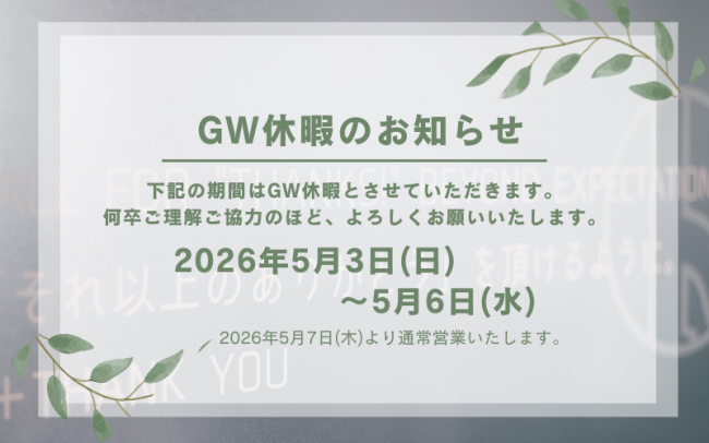 ※2025年5月7日(木)より通常営業いたします。